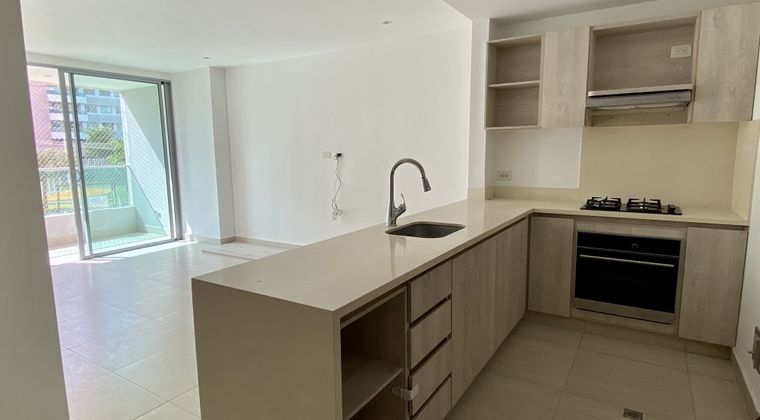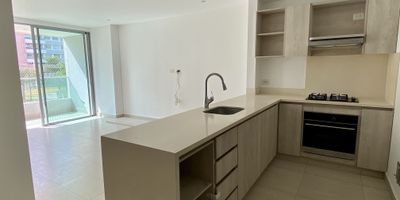 Apartamento ubicado en Riomar cuenta con un área de 78 m2, 2 habitaciones con su baño interno y walking closet , la habitación principal con su balcón, baño social, sala comedor, cocina abierta, zona de labores. Sistema de vigilancia las 24 horas, 1 parqueadero cubierto. Sistema de ingreso con tarjeta. Zonas comunes 2 balcones uno en sala y alcoba principal , parque infantil , piscina y zonas verdes. Cómodas vías de acceso.