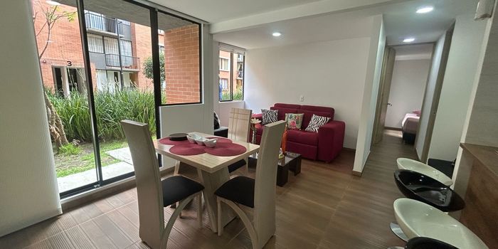 Codigo 18610. Se vende apartamento en el Conjunto Residencial Milano, ubicado en Tocancipá, con un área total de 59,38 m² y área construida de 53,23 m². La propiedad, construida en 2020, está en el primer piso y tiene una distribución moderna con una vista interior del conjunto. El apartamento cuenta con una amplia y luminosa sala-comedor con puerta ventana, un baño social, dos alcobas (una de ellas con closet y baño privado). Además, dispone de una zona de lavandería y una cocina integral con mesón estilo americano a gas natural. Los pisos de la cocina son en porcelanato, mientras que en las zonas sociales son en laminado. No tiene depósito, pero cuenta con parqueadero comunal. El conjunto ofrece excelentes amenidades como zona de BBQ, salón social, parque infantil, zona de mascotas, parqueadero para visitantes y biblioteca. Estrato 3. ¡Una excelente oportunidad para vivir en un entorno tranquilo y bien ubicado!