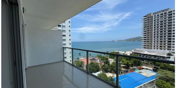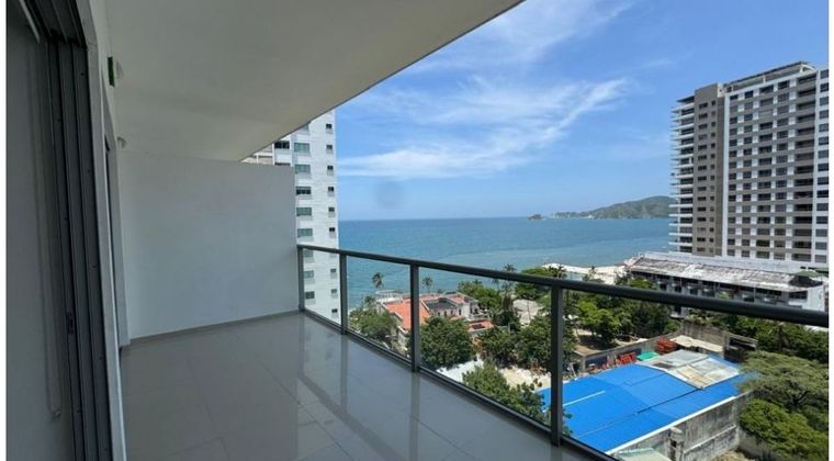 CÓDIGO 9653FR418. Apartamento en Playa Salguero ubicado en un décimo piso. Cuenta con dos habitaciones, tres baños, sala-comedor, cocina tipo americano, área de labores, balcón con vista al mar, depósito y parqueadero. Conjunto con piscina, gimnasio, vigilancia y acceso a zonas turísticas. SI ESTA PROPIEDAD ES DE SU INTERÉS, CONTÁCTENOS Y AGENDAMOS UNA CITA.