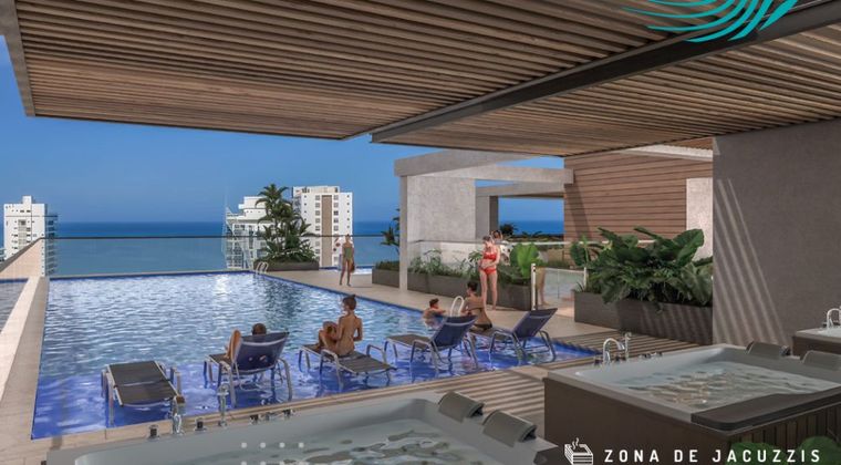 Invierte sobre planos en Playa Salguero, Santa Marta. En un edificio de 23 pisos con suites, apartasuites y apartamentos para turismo que gozan de un diseño moderno y sofisticado. Esta suite consta de cocina, z. de labores, sala-comedor, habitación, baño y balcón. Dentro del proyecto disfrutarás de terraza con vista al mar, gimnasio, sauna, turco, jacuzzis, sky bar y mucho más. Además, estás a pocos pasos del mar y con cercanía a vías principales. *Apartamento para entrega programada en Noviembre 2026, incluye aire acondicionado y 1 cama abatible para el espacio de sala-comedor.
