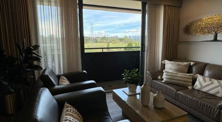 Codigo 26007. Apartamento en venta ubicado en Rionegro sector San JoaquinApartamento de 89 m² ubicado en el exclusivo sector Los Colegios, diseñado para ofrecer confort y funcionalidad en cada espacio.Cuenta con 2 habitaciones, destacando la principal con un amplio vestier, baño privado y doble ducha. Dispone de 2 baños modernos, una acogedora sala-comedor con balcón, zona de ropas independiente y una cocina integral completamente equipada con cava de vinos, horno, microondas y elegantes acabados en piedra sinterizada. La chimenea a gas aporta un toque cálido y acogedor al ambiente.Incluye cortinas, blackout, lámparas, un práctico cuarto útil de 14 m² y parqueadero para 2 vehículos.Este apartamento está ubicado en una torre moderna con zonas sociales que lo tienen todo: turco, sauna, jacuzzi, gimnasio, salón social, cancha sintética y de squash, además de vigilancia 24/7 para tu tranquilidad. Un lugar perfecto para vivir con comodidad y estilo.