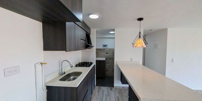 Apartamento en venta de 55M², con vista exterior, ubicado en un 16vo piso, acceso por ascensor, parqueadero propio cubierto. Consta de 3 habitaciones, 2 baños, sala comedor, cocina integral y zona de lavandería. Tiene piso cerámico en todas sus zonas. El conjunto cuenta con salón social, zona para niños, placa polideportiva, gimnasio al aire libre, piscina y vigilancia privada las 24 horas. Cerca al almacén de cadena como Tiendas D1; cerca a los colegios Carlos Pérez Mejía y Mano Amiga; Vías de acceso por la Carrera 66 BB.
