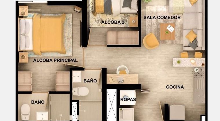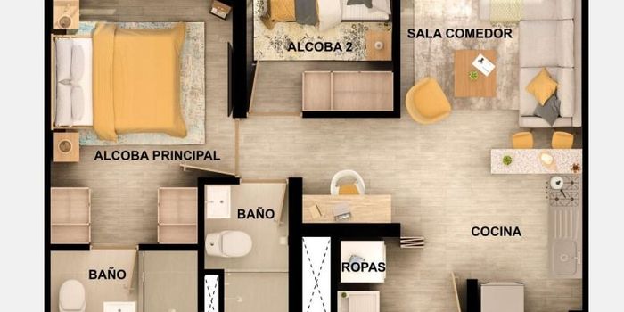 Espectacular apartamento en el conjunto Atardeceres de Madelena Consta de 2 alcobas, 1 bano, amplia sala comedor con excelente iluminacion natural, cocina y zona de lavanderia independiente. Ubicado en un conjunto residencial moderno, con excelente ubicacion y facil acceso a transporte publico, vias principales y zonas comerciales. El conjunto cuenta con completas zonas comunes tipo club house, ideales para toda la familia: Piscina para adultos y ninos Gimnasio Salon social Zona BBQ Parque infantil Cancha multiple Zonas verdes Espacios de coworking Sala de juegos Ademas, ofrece espacios como triciclodromo, zona de mascotas, terraza transitable, bicicleteros, pista de trote y zonas de relajacion, junto con vigilancia privada 24 7, brindando comodidad, seguridad y calidad de vida. Ideal para quienes buscan vivienda o inversión en un sector de alta valorizacion.