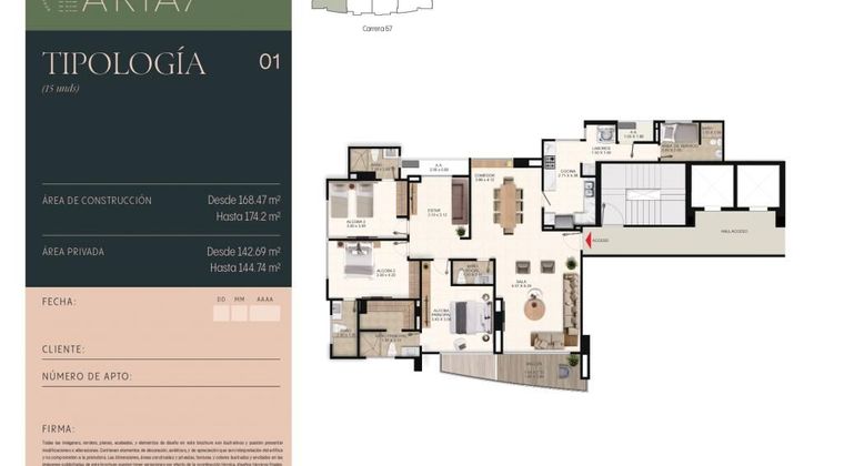 Es un proyecto residencial ubicado en la zona más exclusiva de Buenavista, a pocos pasos de centros comerciales, empresariales y hoteles. Esta ubicación privilegiada en la mejor zona residencial del sector, convierten a ARIA 57 en una inversión inteligente de gran valor. Cerca de: Centro Comercial Buenavista - Centros Empresariales y hoteles. Amenidades: piscina y jacuzzi - cancha recreativa para niños - baño turco - bbq - salón de fiestas - car lobby - teatrino - parque infantil - gimnasio - terraza cubierta con vista a la piscina - Grandes zonas verdes - Amplias vías de acceso - Nueva Carrera 65 o vía al lago - Futura Calle 100 - Lago natural. Amenidades: piscina y jacuzzi - cancha recreativa para niños - baño turco - bbq - salón de fiestas - car lobby - teatrino - parque infantil - gimnasio - terraza cubierta con vista a la piscina .