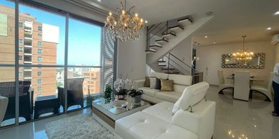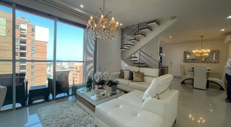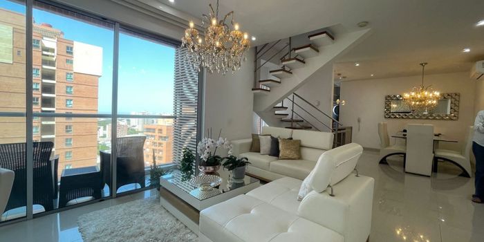 Apartamento dúplex en Venta ubicado al norte de la ciudad de barranquilla en el sector del barrio Villa Santos, cuenta con un área de 138m2, dispone de 3 habitaciones la principal con walking closet y baño interno, baño social, sala comedor, cocina integral abierta, baño auxiliar, zona de labores, cuarto y baño de servicio, cuenta con calentador de agua, balcón con vista al rio en lado sombra, parqueadero doble paralelo, dos depósitos, el edificio cuenta con salón social, piscina, gym, terraza sky, zona infantil, zona de juego, sauna y turco, vigilancia 24/7, parqueadero de visitantes, ubicado muy cerca a supermercados, centros comerciales, parques, iglesias, colegios y universidades. Cod: 784