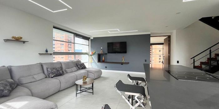 Apartamento AMOBLADO en venta en unidad cerrada cerca a Clinicas, hoteles, restaurantes, Facil acceso desde la Avenida principal, ruta de transporte publico y varios servicios complementarios. Piso en porcelanato, dos niveles, sala y comedor independiente, estudio, 3 alcobas con baño en la principal, cocina integral abierta tipo americano, balcon y parqueaderos cubiertos. Conjunto cerrado con salon social, gimnasio, vigilancia y porteria 24 horas y circuito cerrado de Tv. Inmuebles sujetos a verificación de disponibilidad