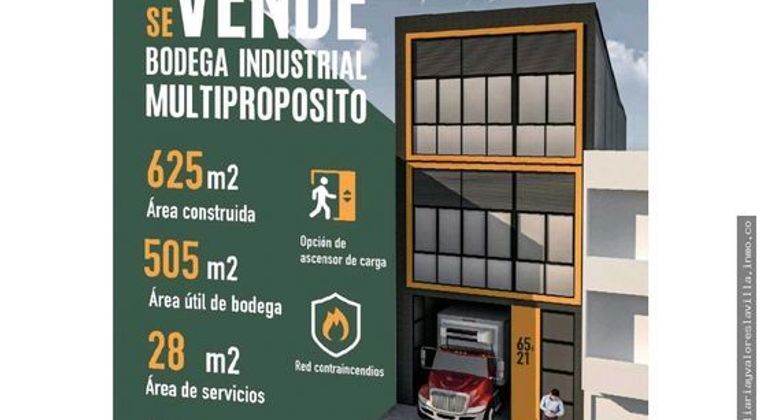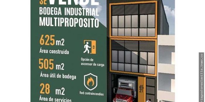 Bodega industrial multipropósito, 505 mts area útil, area construida 625 mts altura libre del primer piso de 4.5 mtrs, red contra incendios, opción de ascensor de carga.