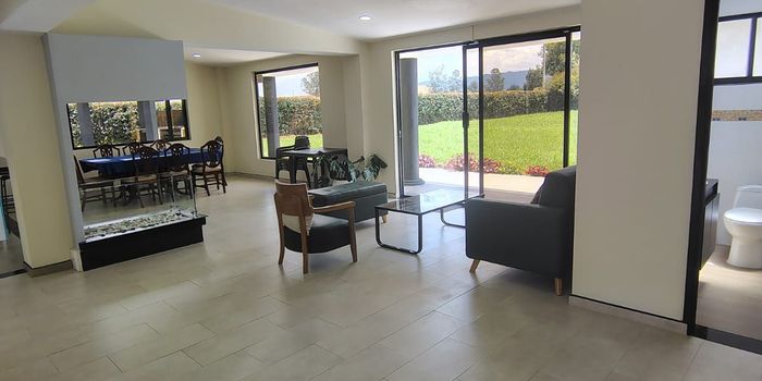 Se arrienda espectacular casa campestre en Tenjo, Vereda Camellón Agua Larga, con un amplio terreno de 2.200 m² y una construcción de 300 m² que combina comodidad, diseño y sostenibilidad. La propiedad cuenta con un antejardín acogedor, garaje con capacidad para uno a cinco vehículos, sala principal, sala de estar, sala de video, comedor y cocina integral tipo americano con ventanales que permiten la entrada de luz natural y vista al entorno verde. Dispone además de zona de lavado, tres baños completos, un baño social, cuarto de linos, pisos en madera laminada y cerámica, y tres habitaciones amplias con clósets. La casa está equipada con paneles solares, chimenea a gas propano y un tanque de reserva para recolección de agua lluvia. La terraza interior y la zona de BBQ con pipeta de gas son perfectas para disfrutar reuniones al aire libre, rodeados de un amplio jardín y zona verde abierta.Su ubicación en la Vereda Camellón Agua Larga garantiza un entorno campestre privilegiado, con acce