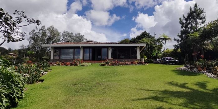 Casa finca en venta o arriendo amoblada o desocupada, primer nivel cuenta con 3 habitaciones (2 con baño privado), baño social completo, sala de star, comedor, amplio, sala, oficina o estudio, salón amplio con baño privado, closet y despensa que se puede usar como habitación múltiple o salón de ejercicios, corredores, parqueadero descubierto para varios vehículos, en el segundo nivel se encuentra la habitación principal, con baño, vestier y vista panorámica. La propiedad cuenta con zona verde con aboles frutales, aguacates, arboles nativos y Jardineras alrededor de la propiedad, incluye poda y mantenimiento de jardines. Ubicada en Pontezuela, sector La Laja frente al crucero del Oeste, acceso pavimentado, lote de 12.000 m2, construidos 500 m2, 2 niveles. Amoblada en 14 millones.