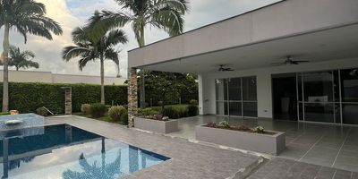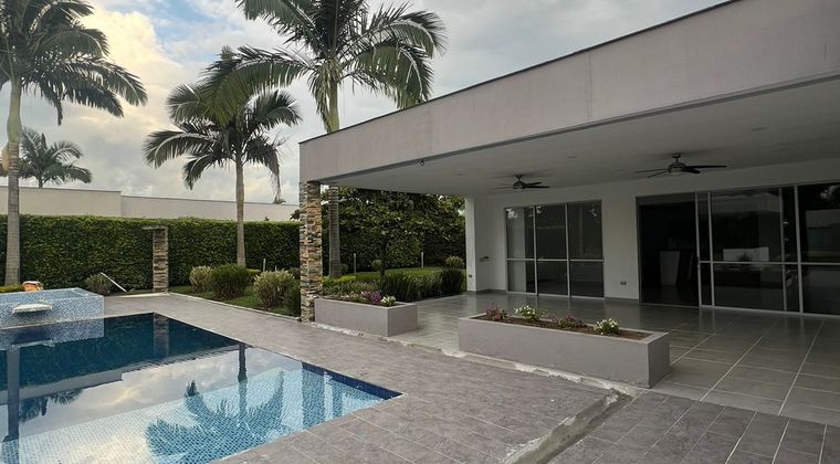 Casa campestre en arriendo ubicada en unidad cerrada en Pueblito Cafetero con iluminación y ventilación natural, con amplios espacios y hermosos acabados. La casa cuenta con sala-comedor, pisos en ceramica, seis habitaciones, ocho baños, cada habitacion con baño, más habitación de servicio con baño, hall de alcobas, cocina integral tipo americano meson en granito,, estufa y calentador a gas, zona de ropas, jardín, antejardín. La casa cuenta con piscina, jacuzzi, zona BBQ, seis parqueaderos y amplias zonas verdes. En conjunto cerrado con vigilancia y portería las 24 Horas. Inmuebles sujetos a verificación de disponibilidad.
