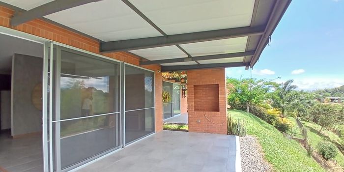 Casa Campestre en arriendo en Pueblito Cafetero en unidad cerrada cerca a rutas de transporte público y servicios complementarios de la zona. Cuenta con salacomedor, pisos en cerámica, estudio, hall de alcobas, dos habitaciones, dos baños, jacuzzi, cocina integral en mesón de Quartzone tipo americano, estufa, calentador a gas, zona de ropas, jardín y antejardín. La unidad posee de cuatro parqueaderos, parques infantiles, zonas infantiles, circuito cerrado de tv, vigilancia y portería las 24 horas. Inmueble sujeto a verificación de disponibilidad.