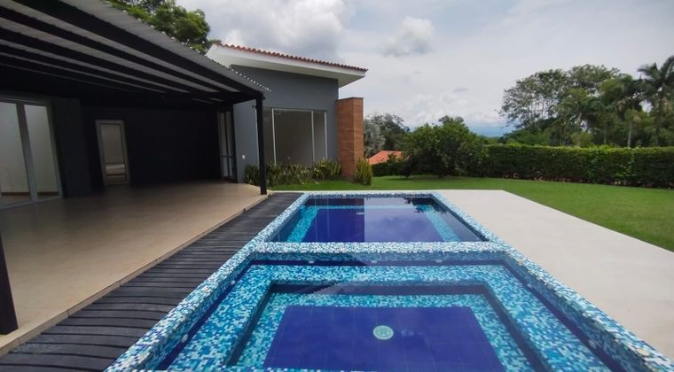 Casa campestre en arriendo en unidad cerrada ubicada en el mejor sector de Cerritos con fácil acceso. La casa cuenta con salacomedor, pisos en cerámica, estudio, cuatro alcobas, cinco baños, cada alcoba tiene baño privado, mas habitacion de servicio con baño, cocina integral mesón en granito, zona de ropas, estufa y calentador a gas. Ademas cuenta con jardín, antejardín y piscina privada. La unidad cuenta con dos parqueaderos cubiertos y cuatro descubiertos con cuarto útil, parques infantiles. Cuenta con seguridad las 24 horas con portería, vigilancia y circuito cerrado de TV. Inmuebles sujetos a verificación de disponibilidad. Arriendo Cerritos Pereira