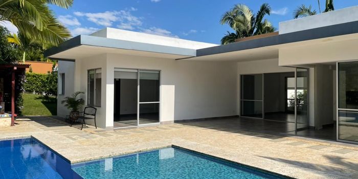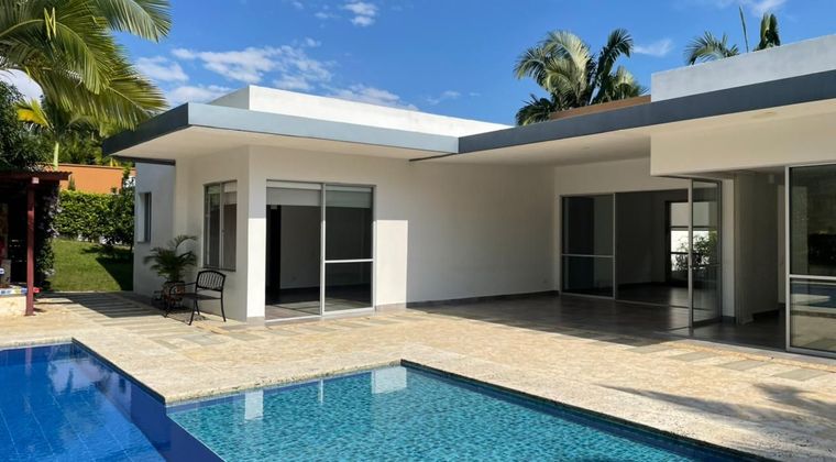 Casa Campestre en arriendo en Pueblito Cafetero, cerca rutas de transporte público y servicios complementarios de la zona. Cuenta con salacomedor, pisos en cerámica, comedor auxiliar, estudio, estar de tv, tres habitaciones con baño privado, cinco baños, cocina integral en mesón de Quartzone, estufa, calentador a gas, área de servicios, zona de ropas, jardín y antejardín. La unidad posee de cuatro parqueaderos, tres de ellos descubierto y uno cubierto, piscina, sauna turco, parques infantiles y zonas verdes. Además cuenta con circuito cerrado de tv, portería y vigilancia las 24 horas. Inmuebles sujetos a verificación de disponibilidad. Arriendo Pueblito Cafetero Pereira