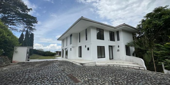 Casa Campestre ubicada en la zona de Cerritos El Tigre, a tan solo 5 minutos de la ciudad, cerca de Clínicas, Centros Comerciales, Supermercados, Hoteles, Colegios, Universidades y el Aeropuerto Internacional de Pereira. El condominio tiene la ventaja de tener el 60% de su área en zonas verdes y de estar habitado con tan solo 15 casas con amplios espacios una de otra. 6 habitaciones, 10 baños, sala doble, comedor, cocina con despensa, zona de ropas, cuarto útil, spa, zona de gimnasio, quiosco, terrazas PRIMER PISO: sala doble, comedor, cocina con despensa, 1 habitación, baño social. SEGUNDO PISO: 3 habitaciones: principal con baño privado y vestier, 2 habitaciones con baño privado PLANTA BAJA: 2 habitaciones para el servicio con baño privado, zona de ropas, cuarto útil ZONA PRIVADA EXTERIOR: Oficina con 2 baños privados, gimnasio con 1 baño ZONA COMUN EXTERIOR: Quiosco. zona húmeda con dos baños y duchas, terrazas, zona de parqueo, sendero ecológico, puerta eléctrica con control entrada casa, puerta eléctrica con control entrada condominio