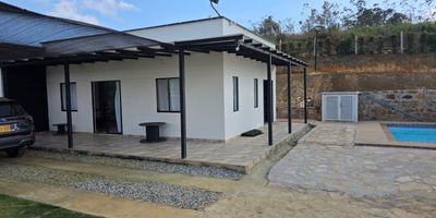 Parcela Ubicada en la mesa de los santos,entrada por pueblito acuarela, conjunto horizontes Area del Terreno1040m2Áreaconstruidadesolo casa 160m2 Consta de: 3 habitaciones, de las cuales 2 son con baño privado y un baño auxiliar Sala comedor, cocina abierta en isla, cuarto de lavado,piso en cerámica,división de baños en vidrio templado, corredores en tableta gres alrededor de la casa ,portón de madera, 1 cuarto de herramienta,2 cuartos para moto bombas, tanque aéreo de 2.000 litros, tanque subterráneo de 6.500 litros,bbq,piscina con hidromasaje y luces incorporadas, escaleras en piedra.