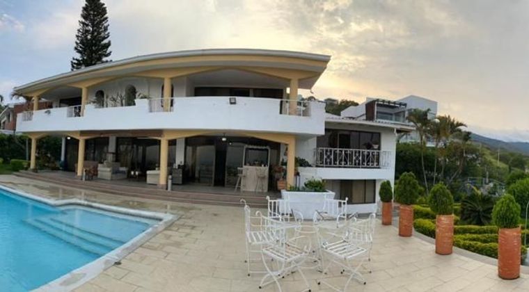 Casa campestre,en niveles, excelente vista 180 grados, Ubicado a pocos minutos del norte de Cali,distribucion , Sala , Dos comedores. 3 habitaciones con baño , cuarta habitación con baño completo exterior , habitación principal con vestier y baño con jacuzzi , Estudio con baño y depósito, Cuarto de huéspedes con baño completo,Dos habitaciones adicionales, una con baño para personal de servicios, 3 balcones, Fuente de agua en piedra ,Jardines al rededor de la casa.Garaje doble cubierto , Carpintería en madera maciza, excelente cimentación, acueducto propio ,Kiosko, piscina jacuzzi, ,zona social, Terraza con BBQ, piscinas, canchas de tenis, de football, gimnasio, jacuzzi, turco, kioskos,agua potable, Zona verde con árboles frutales ,