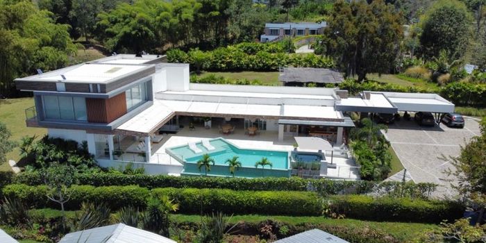 SE VENDE Casa de Lujo en Circasia - Norte de Armenia Descubre esta espectacular casa de lujo ubicada a solo 10 minutos al norte de la ciudad de Armenia, en el exclusivo municipio de Circasia. Esta propiedad, construida en noviembre de 2021, ofrece un ambiente de tranquilidad y elegancia en un lote de 2500 m² con 650 m² construidos. **Características Destacadas:** - **Habitaciones:** La casa cuenta con una habitación principal de 75 m² y otra de 55 m², además de tres habitaciones de 32 m² y una habitación adicional de 28 m², todas con baño privado. - **Áreas Comunes:** Disfruta de un amplio doble salón y un comedor con jardín interior que proporciona una atmósfera cálida y acogedora. La cocina está completamente equipada con electrodomésticos Teka, garantizando la mejor experiencia culinaria. - **Entretenimiento y Relajación:** Un espacio exterior excepcional que incluye una sala en deck con fogata, piscina, jacuzzi y un área de BBQ con electrodomésticos Coyote y estufa de alta potencia, perfecta para reuniones familiares o con amigos. - **Comodidades Adicionales:** La propiedad cuenta con dos baños sociales, una zona de ropas y amplios jardines con guaduales que rodean la casa, brindando privacidad y belleza natural. - **Capacidad:** Con espacio para 19 personas, es ideal para aquellos que buscan disfrutar de la vida en comunidad. - **Estacionamiento:** 8 parqueaderos disponibles. **Amoblada y Acondicionada como Hotel de Lujo:** Esta impresionante casa se vende completamente amoblada y está acondicionada para funcionar como un hotel de lujo, ofreciendo una oportunidad única de inversión. **Precio de Venta:** $3.990 MM **¡Esta casa está a la venta!** No pierdas la oportunidad de adquirir este exclusivo inmueble. Contáctanos para agendar una visita y descubrir todo lo que este extraordinario hogar tiene para ofrecer.