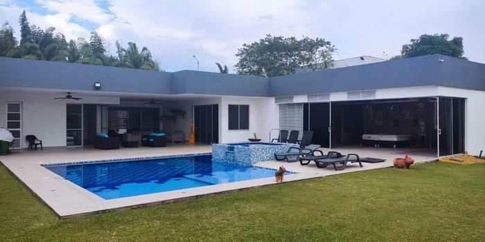 Casa Campestre en Venta en Pueblito Cafetero en unidad cerrada, cerca a restaurantes, rutas de transporte público y servicios complementarios de la zona. Cuenta con salacomedor, pisos en cerámica, estudio, hall de alcobas, tres habitaciones, cinco baños, cada habitacion con baño, cocina integral tipo americano en mesón de granito, área de servicios, zona de ropas, jardín y antejardín. La unidad posee de cuatro parqueaderos, zonas verdes, circuito cerrado de tv, vigilancia y portería las 24 horas. Inmueble sujeto a verificación de disponibilidad.