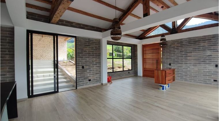 Casa campestre para estrenar ubicada en La Ceja - Vereda El Tambo, cuenta con un área construida de 243.78m2 + 39.92m2 de terrazas descubiertas, y área lote 2675.09m2, esta propiedad cuenta tres habitaciones, dos baños completos y el social es medio baño sin ducha, cocina integral, zona de ropas, senderos en reserva natural, dos cascadas, portería y seguridad privada, planta de tratamiento de agua potable, agua propia. Predial - 3.994.981, Administración - 519.506 ¡Contáctanos para mas información!