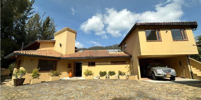 Hermosa casa campestre de 585 M2, ubicada en la tranquila y exclusiva zona de La Calera en Cundinamarca cerca al condominio teusacál. Con un amplio terreno de 2300 M2, esta propiedad ofrece una combinación perfecta entre la paz de la naturaleza y la comodidad de una casa moderna. Con un diseño arquitectónico impecable, la casa cuenta con 5 amplias alcobas, cada una con su propio baño, para brindar privacidad y confort a todos sus habitantes. Además, cuenta con áreas sociales y de entretenimiento, como una biblioteca/estudio y un acogedor balcón, ideales para relajarse y disfrutar de las hermosas vistas del entorno natural. Con un total de 8 baños y 9 garajes, esta propiedad es perfecta para recibir a familiares y amigos en cualquier momento. Además, su diseño moderno y funcional incluye características como armarios empotrados, cocina integral y una zona de lavandería, que hacen que el día a día sea más cómodo y organizado. Si eres amante de los animales, esta casa es perfecta para ti, ya que admite mascotas y cuenta con amplios espacios verdes donde tus mascotas podrán correr y jugar. Además, su ubicación en un entorno natural rodeado de bosques nativos es perfecto para los amantes de la naturaleza. En cuanto a características externas, la casa cuenta con acceso pavimentado y una cochera/garaje para mayor comodidad y seguridad. También tiene una zona de barbacoa/parrilla/quincho, perfecta para disfrutar de deliciosos asados en familia o con amigos. Su ubicación cerca de la zona urbana permite estar cerca de todos los servicios necesarios, mientras se disfruta de la tranquilidad del campo. Además, su acceso con tarjetas o dispositivos brinda mayor seguridad y privacidad. No solo es una casa, es un estilo de vida. Rodeada de áreas turísticas y con luz natural durante la mañana y la tarde, esta casa campestre ofrece tranquilidad y confort en un ambiente rodeado de naturaleza. Además, cuenta con tanques de agua para garantizar el sumin