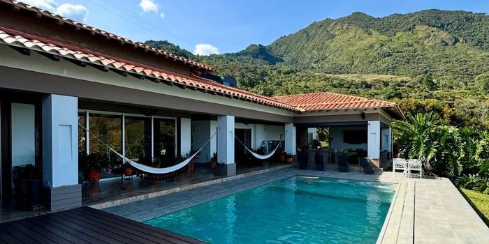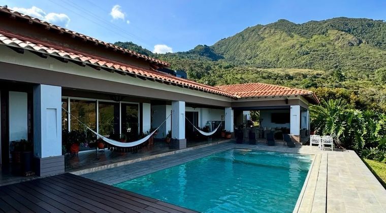 PV-LVG Disfruta del confort y la exclusividad en esta espectacular casa campestre de lujo, ubicada en uno de los sectores más tranquilos y de mayor valorización de Bello. ✅ Características principales: 5 amplias alcobas con excelente iluminación 5 baños modernos Cocina integral abierta Sala y comedor con diseño elegante Piscina privada, jacuzzi, Cancha de Futbol 2 parqueaderos cubiertos, 10 descubiertos Casa de Mayordomía Vista panorámica incomparable Esta propiedad combina lujo, comodidad y naturaleza, ideal para quienes buscan un espacio exclusivo para vivir o invertir. Area del lote 6.876 mt Construido 776 mt Administración: 877.000 Predial Anual: 6 Millones