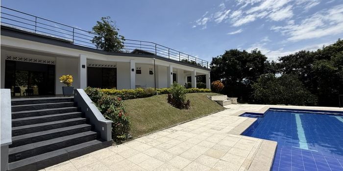 Espectacular casa campestre para la venta en conjunto cerrado, Santagueda. Cuenta con: Área terreno 2.450 metros cuadrados Área construida 299 metros cuadrados ° 4 alcobas ° 3 baños ° Alcoba principal con vestier y baño ° sala ° comedor ° cuarto y baño de servicio ° patio de ropas ° cocina con isla ° deposito ° terrazas ° pergola ° piscina ° árboles frutales ° pisos en cerámica ° vista panorámica La casa cuenta con árboles frutales de naranja mandarina, guayaba araza y guayaba pera, limón mandarina, aguacate, mango, guanábana, banano y plátano El condominio cuenta con lago, cancha de micro fútbol y volleyball, puerta eléctrica Administración $ 880.000 incluye * arreglo de prados y jardines * arreglo de piscina ( no incluye químicos)