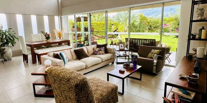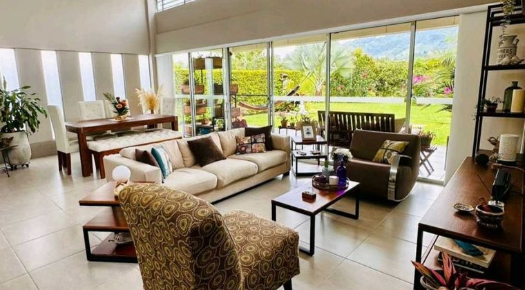 Casa campestre en venta – Calarcá, Quindío Ubicada en un condominio con vigilancia 24 horas, esta casa ofrece un ambiente tranquilo, rodeado de naturaleza y con todas las comodidades. Cuenta con 3 alcobas, 2 baños, sala, comedor, cocina de concepto abierto, zona de ropas, y una agradable terraza con jardín. Dispone además de garaje doble y bodega. El lote tiene 360 m², con 174 m² construidos y 154 m² de área privada. La unidad cuenta con salón social, juegos infantiles, piscina y zona de asador, ideal para disfrutar en familia. Un lugar perfecto para vivir con confort, seguridad y contacto con la naturaleza.
