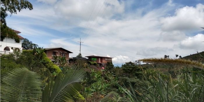 Casa Campestre ubicada a 5 minutos de Palestina. Ideal para hospedaje. Consta de dos edificaciones En una encontramos a nivel de calle un parquedero para 5 carros aproximadamente, y una oficina o local. Bajando las escalas encontramos un apartamento de 3 habitaciones,dos baños, cocina con estufa, gas, pisos en ceramica. La otro edificacion Tiene un mirador con terraza, cocina, baño, estufa, pisos en ceramica. En el segundo piso encontramos un apartamento de tres habitaciones, dos baños, sala comedor, cocina abierta con estufa y extractor, pisos en ceramica, gas, ducha electrica. En el primer piso estan los cimientos para construir otro apartamento. Construccion en ladrillo a la vista, tiene pozo septico y letrina, dos redes de gas domiciliario, agua potable,energia.