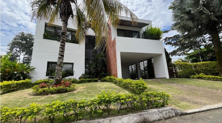 Código. nueve dos siete cero cinco ocho nueve . VENTA CASA CONDOMINIO EXCLUSIVO de 24 casas en el sector de La Viga PANCE. Casa ubicada en uno de los sectores de Pance, un lugar seguro y tranquilo donde aún se escucha el sonido de los pájaros por su naturaleza y tranquilidad del condominio y la zona que lo rodea. Es una de las Zonas de gran valorización en la Ciudad. La casa está construida a dos niveles , en su parte externa cuenta con cuatro garajes cubiertos y tres descubiertos , su entrada es lateral con zona verde . En el primer piso cuenta con comedor , cocina integral tipo americano , horno , extractor , lavavajillas, excelentes muebles de almacenamiento , zona de oficios , alcoba servicios, baño de servicios , dos calentadores de agua distribuidos por zonas , deposito externo y deposito interno , zona de asado , amplia sala de visitas a doble altura , baño social, zona de música y terraza . En el primer piso cuenta con una habitación espaciosa con aire acondicionado y closet. En el segundo piso se ingresa por una moderna escalera en cemento blanco y cuenta con un estudio y tres habitaciones espaciosas todas con baño y vestier, con aire acondicionado ,una con balcón y otra con terraza amplia . Su construcción es antisísmica y diseño moderno a una altura de tres metros y en doble altura con seis metros, dobles muros , ventilación cruzada y techo térmico lo que la hace permanecer muy fresca, tiene acabados en Porcelanato y cerámicas de alto tráfico, vigas a la vista en oxido , acabados en madera laminada moderna para vestier y biblioteca , cableado para televisión por cable. amplia zona disponible para disfrutar del verde para juego .