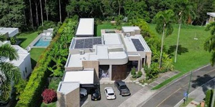 Moderna propiedad de 500 m2 en un sólo piso, inmersa en medio de bosque nativo. cuenta con 1.800 kms de senderos naturales propios de la zona. Calles internas pavimentadas. con la privacidad del campo pero la cercanía de la ciudad. La casa cuenta con entrada principal y de servicio, oratorio, tres habitaciones, dos con baño privado, zona de tv, estudio privado con biblioteca, baño social completo. Cuarto principal con baño y vestir amplios, con acabados de alta calidad y terraza privada. Cuarto de empleada con baño privado, cuarto de máquinas. Cocina abierta tipo americano con isla y compartimientos de almacenaje de piso a techo. Sala, comedor terraza con vista a la zona social interna. Kiosko dotado asador, barril peruano, plancha teriyaki, fogón, congelador, mesa de madera externa. baños sociales y almacenamiento de exteriores, cuarto de máquina, piscina y jacuzzi, deck. Paneles solares para la función total de la casa y tanque de reserva de agua de 15.000 litros. ANGELICA GALLEGO