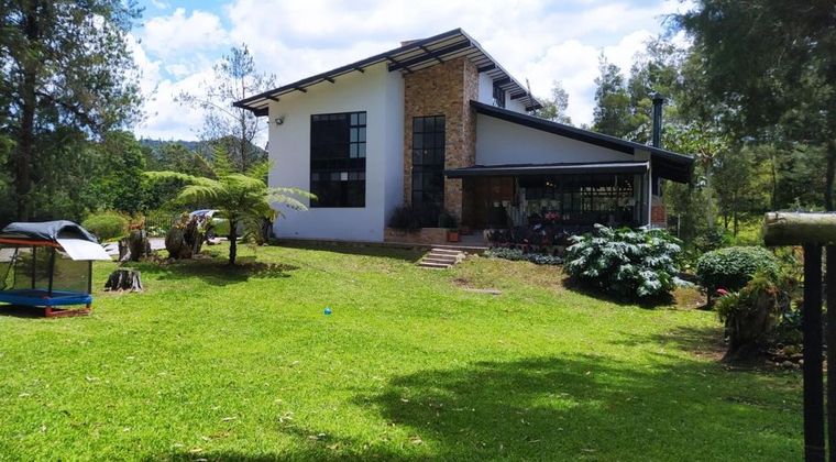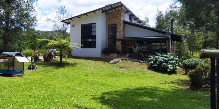 Se vende casa campestre, Area lote 5300 metros Area construida 430 metros,cuenta con 5 alcobas cada una con baño y vestier,2 salones de tv, espacio para oficina, Cocina integrada a la sala y comedor y chimenea , despensa,cuarto de ropas,2 deck independientes cubiertos Parquadero para 7 carros, apartamento independiente para mayordomo con 2 alcobas más sala comedor cocina integral, patio de ropas. cuarto util de 16 metros. además, la finca tiene: portada eléctrica acceso a carros en via interna en cemento, jardin plano con parque infantil, estadero exterior para asados, lago con nacimiento de agua, gallinero.