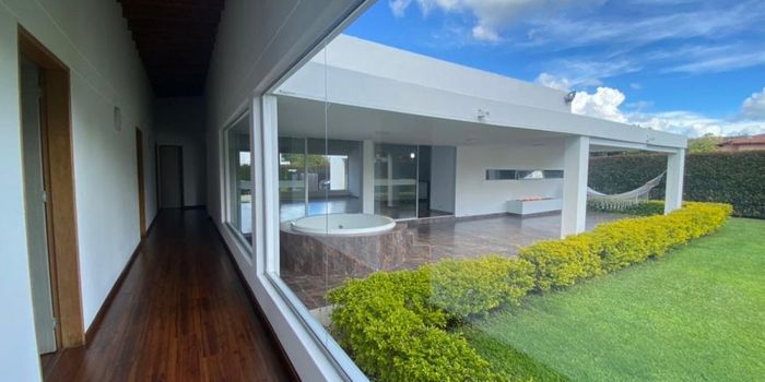 Ubicación: • Llanogrande. • Cercanía al Aeropuerto José María Córdova y acceso a ciclorutas. Área: • Área construida: 350 m². • Área de lote: 1550 m², plano. • Casa de un solo nivel. Distribución interior: • 4 habitaciones privadas, cada una con baño y vestier. • 1 habitación de servicio con baño. • Sala y comedor integrados. • Cocina abierta completa con barra. • 2 cuartos útiles. Zonas exteriores y adicionales: • Terraza cubierta de 50 m². • Jacuzzi al aire libre. • Fuente de agua exterior. • Puerta electrónica de acceso. • Cerramiento perimetral en malla con vegetación natural. Parqueaderos: • 8 parqueaderos dobles cubiertos. Zonas comunes: • Portería 24 horas. • Zona de juegos infantiles. • Cancha de microfútbol y baloncesto. ? Piensa En Tú Hogar ?