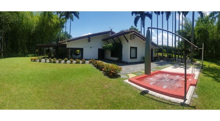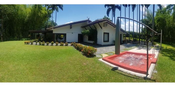 Presentamos esta mega propiedad tipo casa campestre en venta en condominio cerrado de pocas casas sin zonas comunes aparte de la garita de entrada y la vía interna en el sector del Tigre Cerritos en la ciudad de Pereira. Esta propiedad tiene una extensión de terreno de 3100 m2 y un área construida de 423 m2 en un solo nivel distribuidos de la siguiente forma: 4 Habitaciones con baño y closets, sala, comedor, sala de estar exterior amplia, cocina integral, alacena, cuarto de vajillas y vinos, cuarto de linos, cuarto útil, bodega, baño social, parqueadero cubierto para 2 vehículos y externo para 4 más, jacuzzi para 12 personas con calentador a gas y cuarto de máquinas escondido, hidro Flow, planta eléctrica, patio de ropas y amplias zonas verdes.