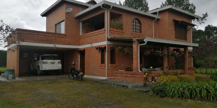 Venta de hermosa y agradable casa de campo en el corregimiento de Santa Elena con una excelente ubicación en unidad cerrada, donde son 21 parcelas excelentemente bien habitadas por gente de la industria y la academia en su mayoria. Es una unidad campestre con portería, agua de nacimiento propia y acueducto y demás servicios de EPM. La parcela tiene un lote de 6.450 metros prácticamente planos con vista a la ciudad de Medellín, sin ruido de ninguna clase. Tiene una casa construida de 286 metros en dos niveles distribuidos así En el primer nivel encuentra un garaje doble cubierto con su cuarto útil, una cocina integral con lavaplatos electrico, comedor, sala con bar y chimenea, dos alcobas, mas alcoba de servicio con baño, zona de ropas con patio, un baño social. En el segundo nivel disfrutan de una sala de TV, dos alcobas, todas con baño y vestier, una de ellas con jacuzzi y otra con bañera. Dos de ellas con balcón hacia zonas verde. Calentador de gas con distribución tanto a cocina, as