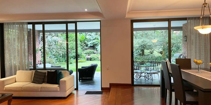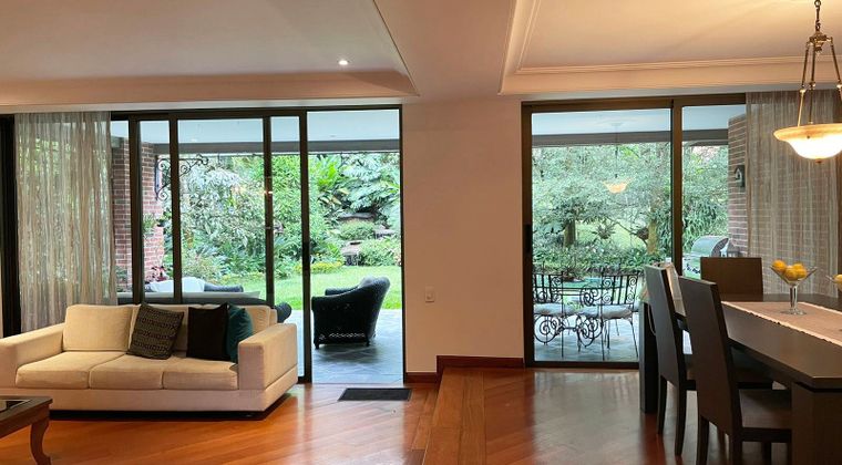 Casa amoblado en arriendo en unidad cerrada cerca a restaurantes, museos, vias principales, universidades, rutas de transporte publico y servicios complementarios. Piso en madera y mármol, chimenea, sala y comedor independiente, estudio, biblioteca, estar de tv, 3 alcobas con baño en cada una, tina, cocina integral cerrada, alcoba y baño de servicio, terraza, jardín, y parqueaderos cubiertos. Conjunto cerrado con salón social, turco, parques infantiles, zonas verdes, vigilancia 24 hrs, citofonia, alarma, caja fuerte y circuito cerrado de tv. *Inmuebles sujetos a verificación de disponibilidad.*