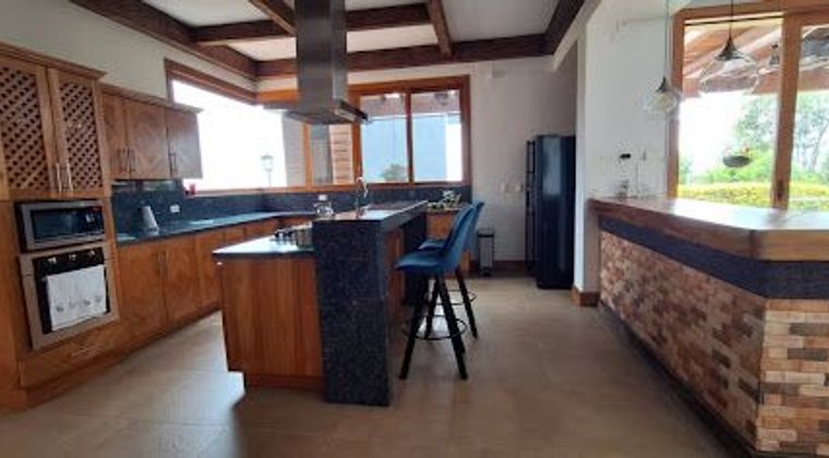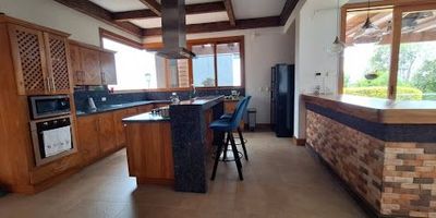 Casa en arriendo con en Bello Norte America con 6 habitaciones, 2 closets, 4 vestier, 1 closet de linos, cuarto de servicio con baño, sala comedor y sala de tv, cocina integral, 5 baños completos, estudio, terraza, bar, zona de ropas, balcones, jacuzzi, chimenea y parqueadero para 10 carros. Parcelación con vigilancia 24 horas y circuito cerrado, zonas verdes, parque infantil, cancha de fútbol y zona de asados. Construcción moderna en madera teka, 11 años, excelente iluminación, a 20 minutos de la autopista norte. Contácta a Epicasa.