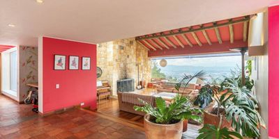 Hermosa casa ubicada en Sindamanoy, con vista panorámica a la sabana de Bogotá, rodeada de un espectacular bosque nativo, construida en un lote de 10.000 mts2, la cual cuenta con 3 construcciones La planta superior de la casa tiene una amplia sala y comedor independientes, con salida a la terraza, con 6 chimeneas, 3 hab cada una con su baño y walk-in closet, una de ellas con balcón, cocina cerrada, zona de lavandería y cuarto de servicio, distribuidos en 600 mts2 La planta baja de la casa con 360 mts2 esta compuesta por una amplia sala y comedor independientes con acceso a la cocina y terraza, seguido de la zona de lavandería, con 2 hab, una con baño privado y walk-in closet y otro baño exterior. A su vez tiene casa independiente para mayordomos, con 2 hab, 2 baños, sala comedor y cocina En arriendo tienes la opción de alquilar la planta superior de la casa en $12 mm y la planta baja en $5 mm . Agenda ya tu cita !!