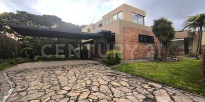 Ubicada en uno de los conjuntos más exclusivos y consolidados de Guaymaral, esta elegante residencia ofrece una perfecta combinación de arquitectura contemporánea, amplitud, privacidad y conexión con la naturaleza, a pocos minutos del norte de Bogotá. Al ingresar, la propiedad impacta con una sala a doble altura, acompañada de ventanales de piso a techo que inundan los espacios de luz natural y se complementan con cortinas eléctricas, creando una atmósfera sofisticada y acogedora. El área social integra un comedor independiente y un cómodo family room, ideales para compartir en familia o recibir invitados. En el primer nivel se encuentran tres amplias habitaciones, cada una con baño en suite, garantizando confort y privacidad. Un estudio independiente con sistema de sonido ofrece el espacio perfecto para home office o sala multimedia. La zona social se extiende hacia una terraza privada, ideal para disfrutar del entorno verde y reuniones al aire libre. La cocina integral, moderna y funcional, cuenta con isla central con estufa a gas, nevera tipo nevecon, lavavajillas, torre de hornos y amplios espacios de almacenamiento. Se complementa con zona de lavandería independiente, cuarto y baño de servicio (CBS).