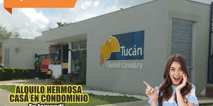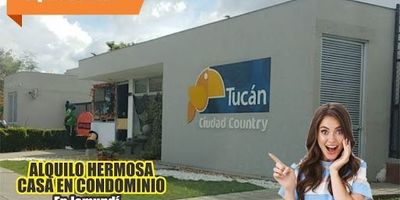ALQUILO HERMOSA CASA EN CONDOMINIO EN JAMUNDÍ EN CIUDAD COUNTRY. Vía Cali Jamundí Conjunto Residencial Tucán Casa 135. COD 590. Excelente ubicación. Cerca de vía principal, cerca de colegios y universidades, cerca de supermercados y centros comerciales. Consta de parqueadero en antejardín, salacomedor, cocina integral a gas, zona de star, baño social, zona de oficios, patio y en el segundo nivel 3 alcobas con closet, alcoba principal con baño y vestier, baño social, citófono, piscina, parque infantil, cancha múltiple, salón social, gimnasio, zonas verdes, portería y vigilancia 24 horas. $1.600.000 Admon incluida. Telfs. **********, **********, **********.