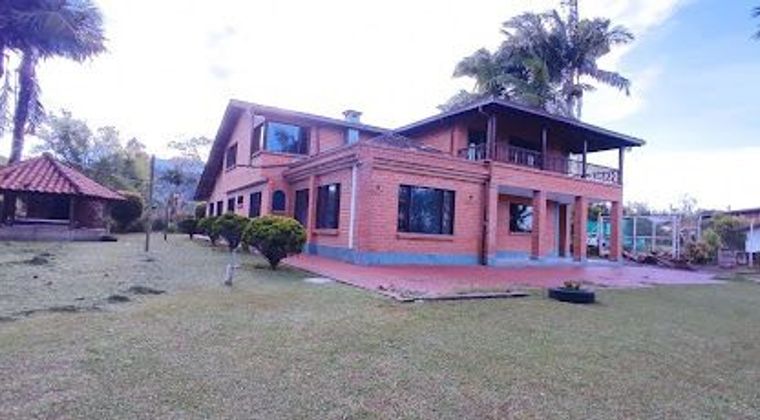 Comoda casa campestre de 414 m2 distribuidos en sala, comedor, 2 salas de estar, 7 alcobas, alcoba de servicio, 5 baños completos, baño de servicio, cocina integral cerrada, zona de ropas, 2 balcones, oficina, salon, quiosco, 2 parqueaderos cubiertos. Ubicado en excelente zona residencial ubicada en el sector el tablacito de Rionegro, cuenta con comodas vías de acceso y transporte publico cercano