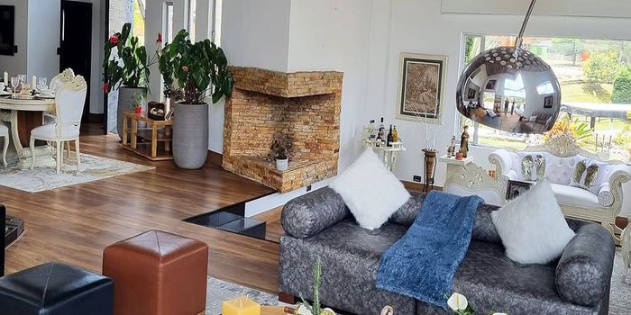 Casa amoblada en arriendo en unidad cerrada ubicada sobre via principal con rutas de trasporte publico, cerca a colegios y estacion de servicio. Entorno totalmente campestre, muy tranquilo y de facil acceso. Piso en ceramica y madera laminada, dos niveles, chimenea, sala comedor, estudio, biblioteca, 4 alcobas con baño en cada una, jacuzzi, cocina integral abierta tipo americano, alcoba y baño de servicio, balcon, terraza, jardin y parqueaderos en area descubierta. Cuenta con gym, sauna, turco, juegos infantiles privados. Gym, salon social, parque infantil, placa polideportiva, cancha de squash, vigilancia 24 horas, citofonia y circuito cerrado de tv. *Inmuebles sujetos a verificación de disponibilidad.*