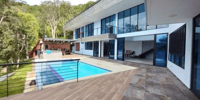 Esta magnífica propiedad te espera para que disfrutes de la tranquilidad y el confort. Casa estilo mediterráneo, con una hermosa visita a la ciudad ed Bucaramanga. Área construida 942 m2, diseño bioclimático, 4 habitaciones, 6 baños, cocina integral con isla, amenidades: sala de cine, salón para juegos, bar, piscina con calefacción, jacuzzi, turco, BBQ, estacionamiento para 5 vehículos. CABAÑA AUXILIAR: Área 45 m2, con Sala comedor, Cocina, zona de ropas, baño, Mezanine con balcón. Se alquila por medio de póliza, no subarriendos ni alquiler para rentas cortas. ¡Llama para obtener más información!