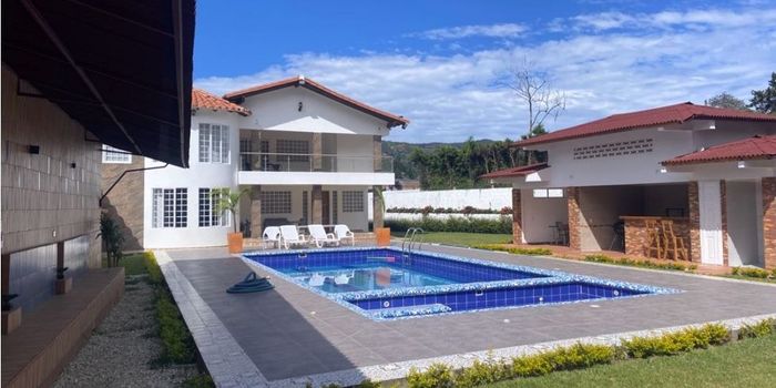 En ésta casa estilo Europea disponible para la renta ubicada sobre la vía de la autopista Medellín Bogotá y cercana a Guarne podrás disfrutar de la comodidad de sus espacios ya que cuenta con 5 habitaciones amplias cada una con su baño privado y su clóset. La casa además cuenta con 2 Balcones espaciosos con vista a la pisicina y a las montañas del bello Municipio de Guarne, una cocina y sala en un concepto abierto que hacen sentir el espacio generoso y luminoso. Una de sus mayores ventajas es que cuenta con 4 cuartos útiles para el almacenamiento, una espectacular pisicina para atender a tus invitados y a toda tu familia ya que como si fuera poco también posee una cocina exterior para que tengas todo al alcance de tus manos y un jacuzzi que a su vez sirve de pisicina para los más pequeños. Imagínate despertar cada día entre el silencio y la tranquilidad de la naturaleza de éste bello sector... si deseas más información no dudes en contactarnos.