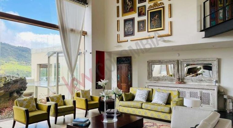 Codigo 19666. ARRIENDO CASA LA CALERA SIKASUE a 15 minutos de la circunvalar 1 Km después del peaje de patios.Conjunto con acueducto propio y permisos con la car al día.Conjunto con 55 casas.Cancha de tenis en polvo de ladrillo, lagos y planta de tratamiento, cancha de futbol, zona de BBQ, cuarto de escoltas, capilla y parque infantil.Área lote 1826.98 MT2 y área construida de 475.41 MT2.Casa por niveles (tres en total) vista panorámica a los cerrosHall de entrada, sala amplia con chimenea, comedor independiente con terraza de BBQ, cinco habitaciones con vestier y baño privado, baño social, terraza privada en habitacion principal 40 m2, jardín exterior de 1.560 MT2, chimeneas en sala, gas natural, calefacción, cuarto y baño de servicio, seis parqueaderos dos cubiertos y cuadro descubiertos, diez parqueaderos de visitantes, deposito, cuarto con rauter central. caldera.