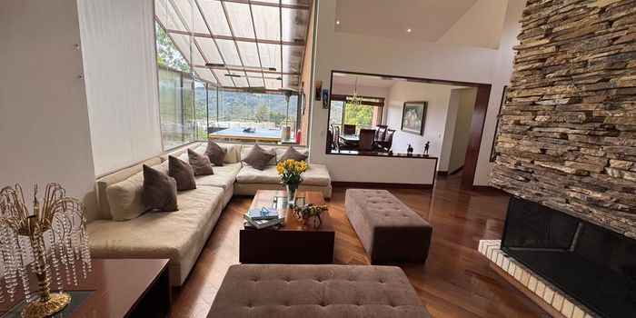 Codigo 19706. En el exclusivo conjunto campestre Sikasue, se encuentra esta elegante residencia diseñada para quienes buscan un equilibrio perfecto entre lujo contemporáneo, naturaleza y privacidad. Construida en 2008 y ubicada en un lote de 1.831,48 m², la propiedad ofrece 400 m² de área interna y cerca de 200 m² de áreas exteriores, creando espacios amplios, luminosos y en total armonía con el entorno natural.La casa recibe con un sofisticado hall de acceso que conduce a una cocina amplia con comedor auxiliar y balcón, una sala principal de doble altura con vista panorámica, sala de televisión, oficina o estudio privado y zona de gimnasio. Cuenta además con dos pérgolas independientes: una como sala de juegos y otra con chimenea abierta hacia la naturaleza, ideales para el disfrute social. Dispone de zona de ropas, cuarto y baño de servicio, tres habitaciones auxiliares con baño en suite y una habitación principal con vestier y baño privado. Jardines y terrazas rodean la propiedad, ofreciendo espacios perfectos para el descanso y la vida al aire libre.Su ubicación es estratégica: a solo 400 metros de la vía Bogotá–La Calera y 600 metros del peaje de Patios, con transporte público permanente y acceso cercano a colegios reconocidos, centros comerciales, supermercados, restaurantes, clubes deportivos y servicios bancarios. En aproximadamente 20 minutos se llega a Bogotá por la Avenida Circunvalar con Calle 84.El conjunto ofrece seguridad 24/7, monitoreo motorizado, vías adoquinadas, capilla, canchas de tenis y fútbol, y amplias zonas verdes que realzan el ambiente campestre.Vivir en Sikasue es disfrutar de tranquilidad, exclusividad y alta valorización, en una de las zonas más apetecidas de La Calera.Administración: $1.800.000 (incluye acueducto)Predial: $4.500.000Una propiedad ideal para quienes desean vivir cerca de la ciudad sin renunciar a la serenidad y al más alto nivel de calidad de vida.