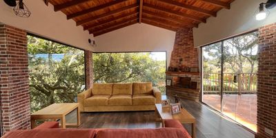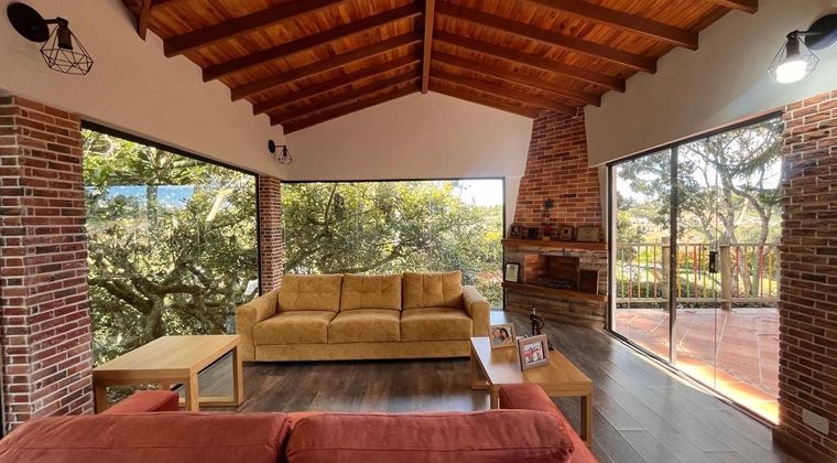 Casa independiente en arriendo para uso residencial en sector tranquilo, campestre y poco flujo vehicular. Piso en madera laminada, lote total 5,000 M2, chimenea, sala comedor, estudio, 3 alcobas con baño en la principal, cocina integral abierta tipo americano, alcoba y baño de servicio, terraza bbq, jardin y 6 parqueaderos . Cuenta con salón de hobbies con chimenea, baño turco, inmuebles sujetos a verificacion de disponibilidad
