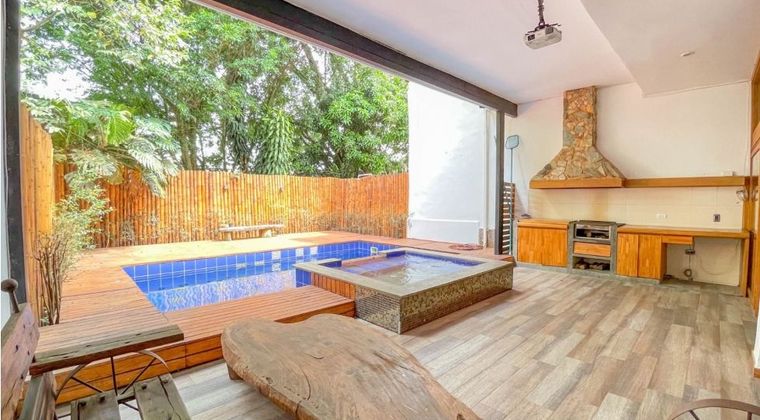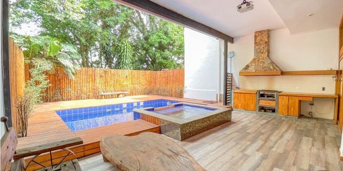 Casa AMOBLADA en arriendo en el sector de el Tesoro, facil acceso desde la via principal, cercana a centros comerciales y sus múltiples servicios complementarios, rutas de transporte publico, calle de poco flujo vehicular, sin salida porque es transito solo de residentes. Piso en porcelanato y madera laminada, dos niveles, puerta de seguridad, sala y comedor independiente, estar de tv, 4 alcobas con baño en cada una, cocina integral tipo americano, balcon, terraza, jardín y 3 parqueaderos.Unidad cuenta con zonas verdes, sistema fly pass, circuito cerrado de tv.