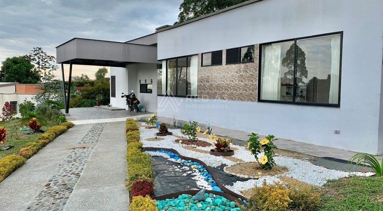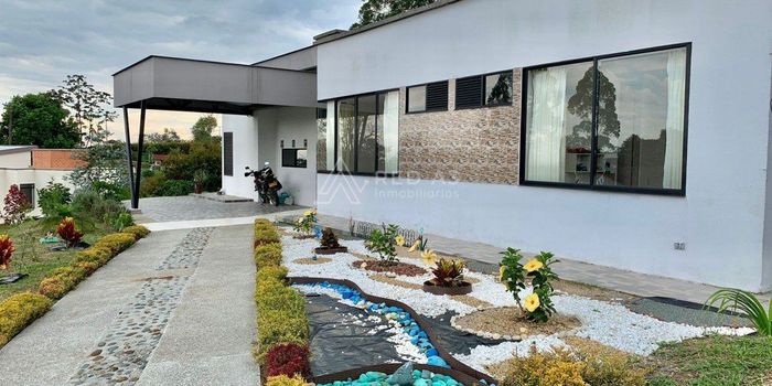 Casa campestre en arriendo, su ubicación es privilegiada ya que se encuentra a solo 700 metros (por destapada) de la autopista del café. Cuenta con buen transporte publico, clima fresco, supermercados cercanos, avistamiento de aves, reservas naturales y vías principales cerca como lo son la vía Armenia y Condina. Cabe mencionar su cercanía con el aeropuerto internacional Matecaña y pueblos del Quindio como lo son Salento, Filandia, Montenegro entre otros. Cuenta con lote de 1.577m2 ondulado con vista al atardecer, kiosko con depósito y barra con lavaplatos. En su interior se encuentra una amplia puerta principal, baño de servicio, estudio con biblioteca, chimenea a gas (cuenta con gas domiciliario), sala-comedor con doble altura y suficiente iluminación natural. La cocina es abierta con ventana al exterior y aparte una zona de lavandería independiente, luego el hall conduce a 4 habitaciones todas con baño y dos de ellas con walking closet.