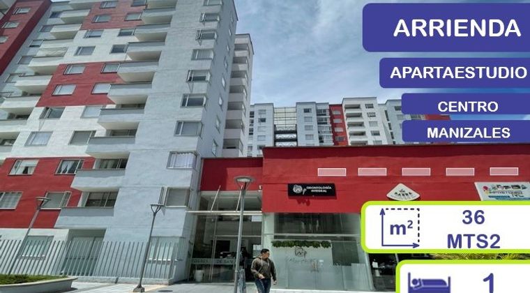 CENTRO, MANIZALES - ARRENDAMIENTO A tan solo pasos de la catedral y la carrera 23 de la ciudad, contamos con un apartaestudio, el cual cuenta con la alcoba con closet independiente a la salacomedor, cocina integral, zona de ropas, calentador a gas, pisos en cerámica en zonas húmedas y madera laminada en el resto del apartamento. El edificio cuenta con vigilancia privada la 24 horas, salón social, cancha múltiple y piscina.