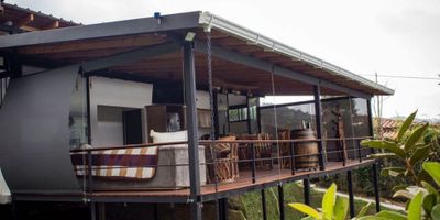 Ésta hermosa casa tipo chalet se encuentra en una mini parcelación que cuenta con portería privada, es la casa ideal para ti si tu prioridad es el contacto con la naturaleza, el silencio y la comodidad ya que ésta hermosa casa cuenta con dos habitaciones, un baño, una cocina completame dotada con todos los utensilios, un comedor, una sala con chimenea a gas y un Jacuzzi. Además de eso la parcelación cuenta con zonas comúnes como un bar, un gimnasio y parqueaderos en el exterior con capacidad hasta para 8 carros. A tan sólo 10 min de la autopista principal Medellín Bogotá.